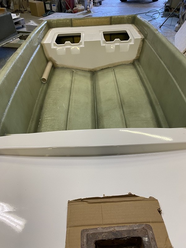 今回、地元は関西のお客様が熱烈なタイガースフアンという事でカラーはデッキは黄色、ハルはブラックカラーのツートンで即決定。仕様は現在使用しているボートでは満足する釣りが出来ないという事で何回も弊社に足を運んで頂き納得するボートを製作させていただく事ができました。ありがとうございます。